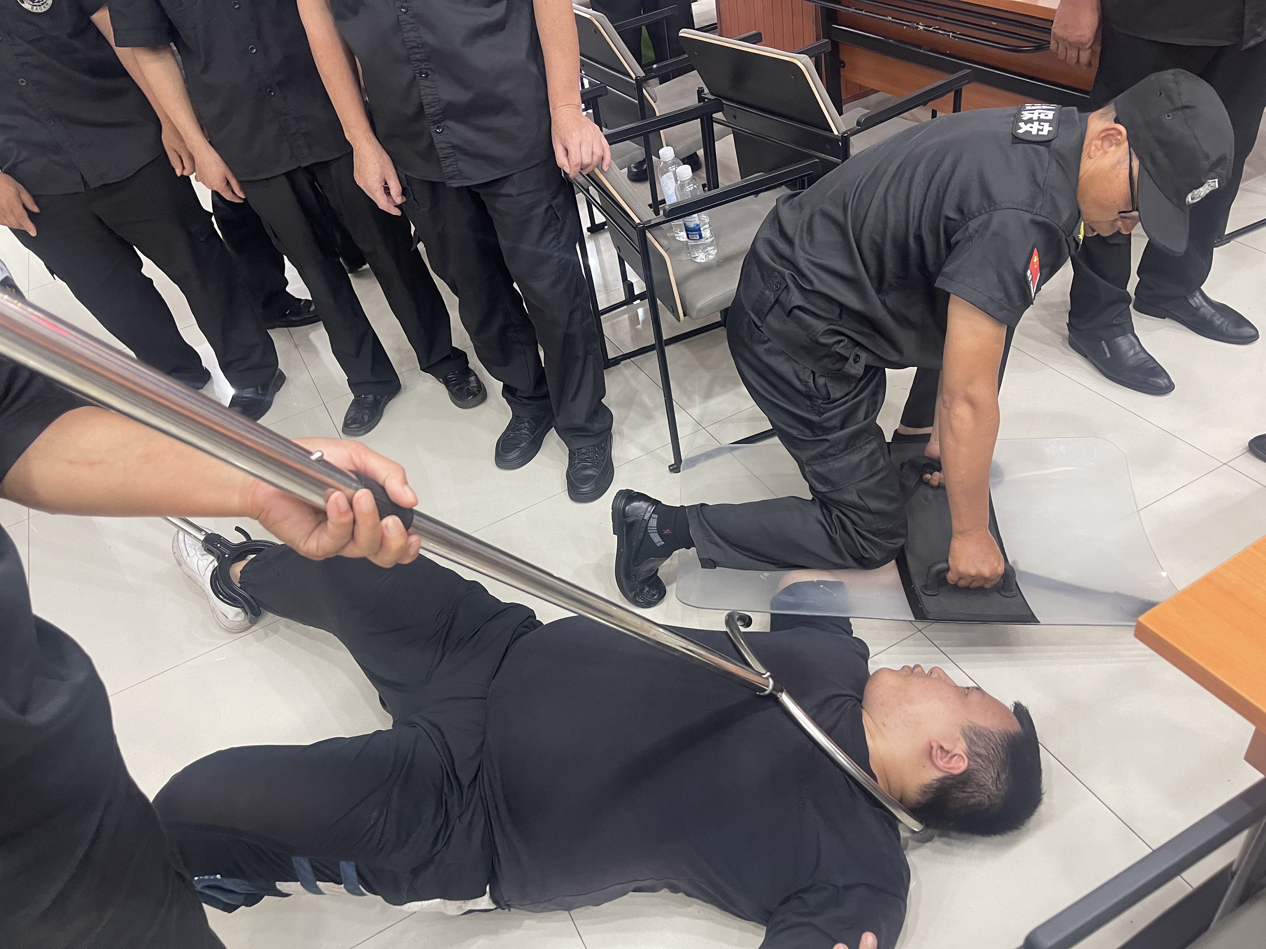 講座結(jié)束后,進(jìn)入到緊張而有序的軍體素質(zhì)及反恐防暴演練環(huán)節(jié)。在教官的嚴(yán)格指導(dǎo)下,保安人員進(jìn)行了隊(duì)列訓(xùn)練、體能訓(xùn)練等基礎(chǔ)軍體項(xiàng)目,通過訓(xùn)練,進(jìn)一步規(guī)范了動作標(biāo)準(zhǔn),增強(qiáng)了身體素質(zhì)和團(tuán)隊(duì)協(xié)作能力。在反恐防暴演練中,模擬了突發(fā)暴力襲擊事件場景,保安人員迅速反應(yīng),按照預(yù)定預(yù)案,熟練使用防暴器械,密切配合,成功制服 “歹徒”,展現(xiàn)出了良好的應(yīng)急處置能力和實(shí)戰(zhàn)水平。